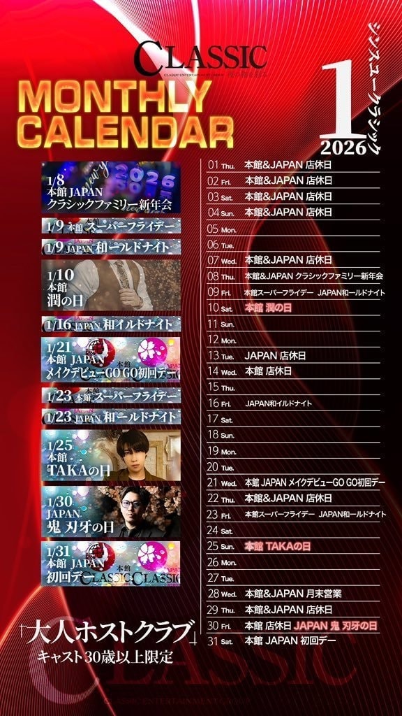 | 1月8日(木) クラシックファミリー新年会 |